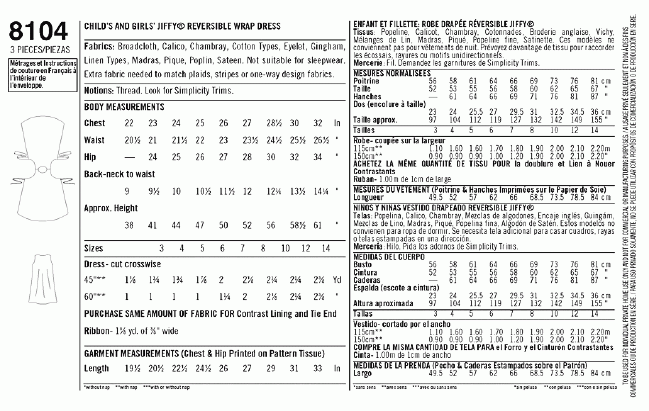 Simplicity Girls' 8104 - Girl's & Teen's Jiffy Reversible Wrap Dress - discontinued