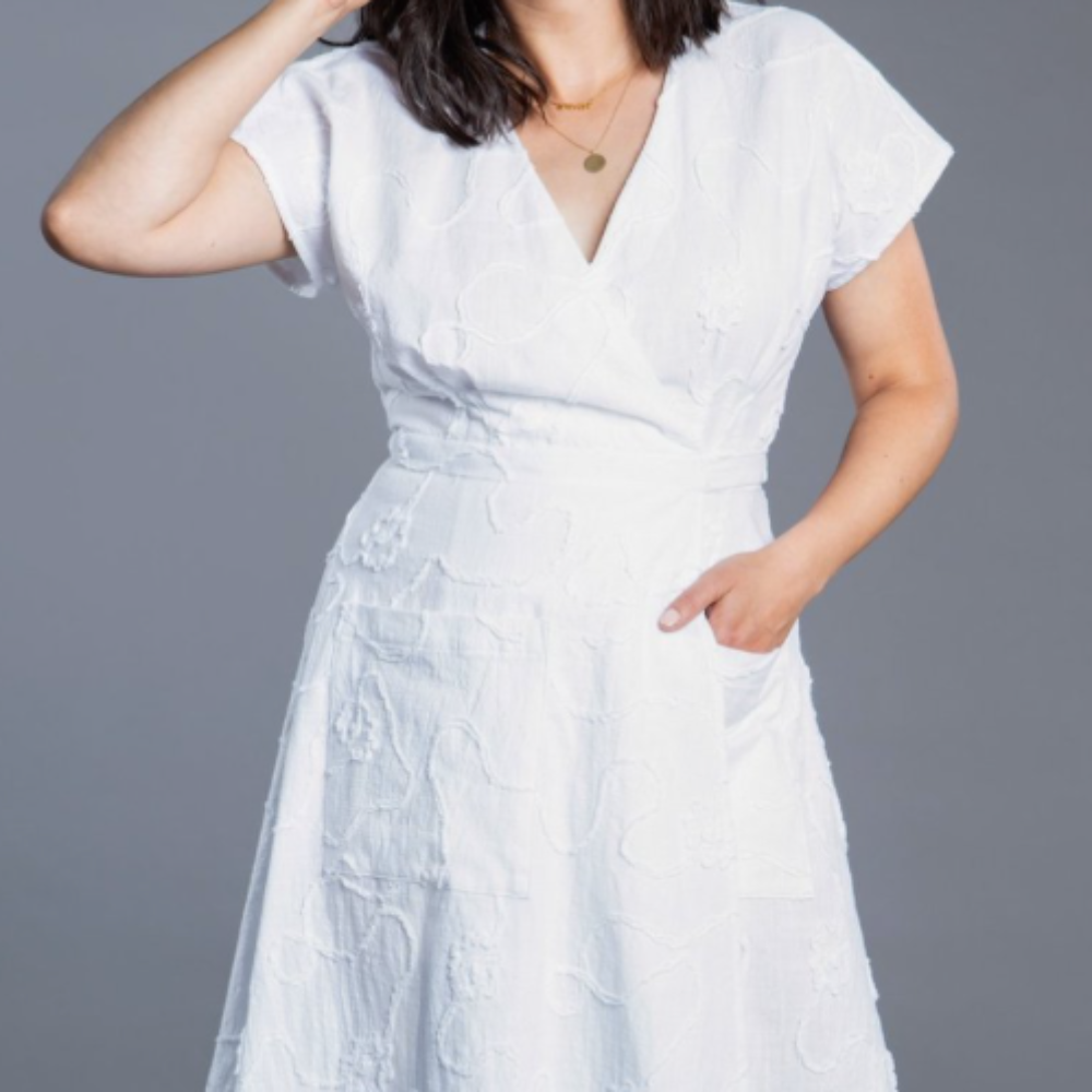 Elodie is a modern take on a classic wrap dress. Romantic and flowy with multiple skirt and sleeve options, it’s equally appropriate at a park picnic or a special wedding.