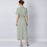 Misses’ Shirtwaist Dresses in two lengths. Dress button fastens at front with elasticated waist. Sleeve and collar options.