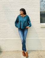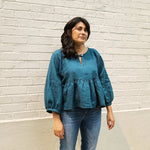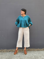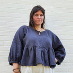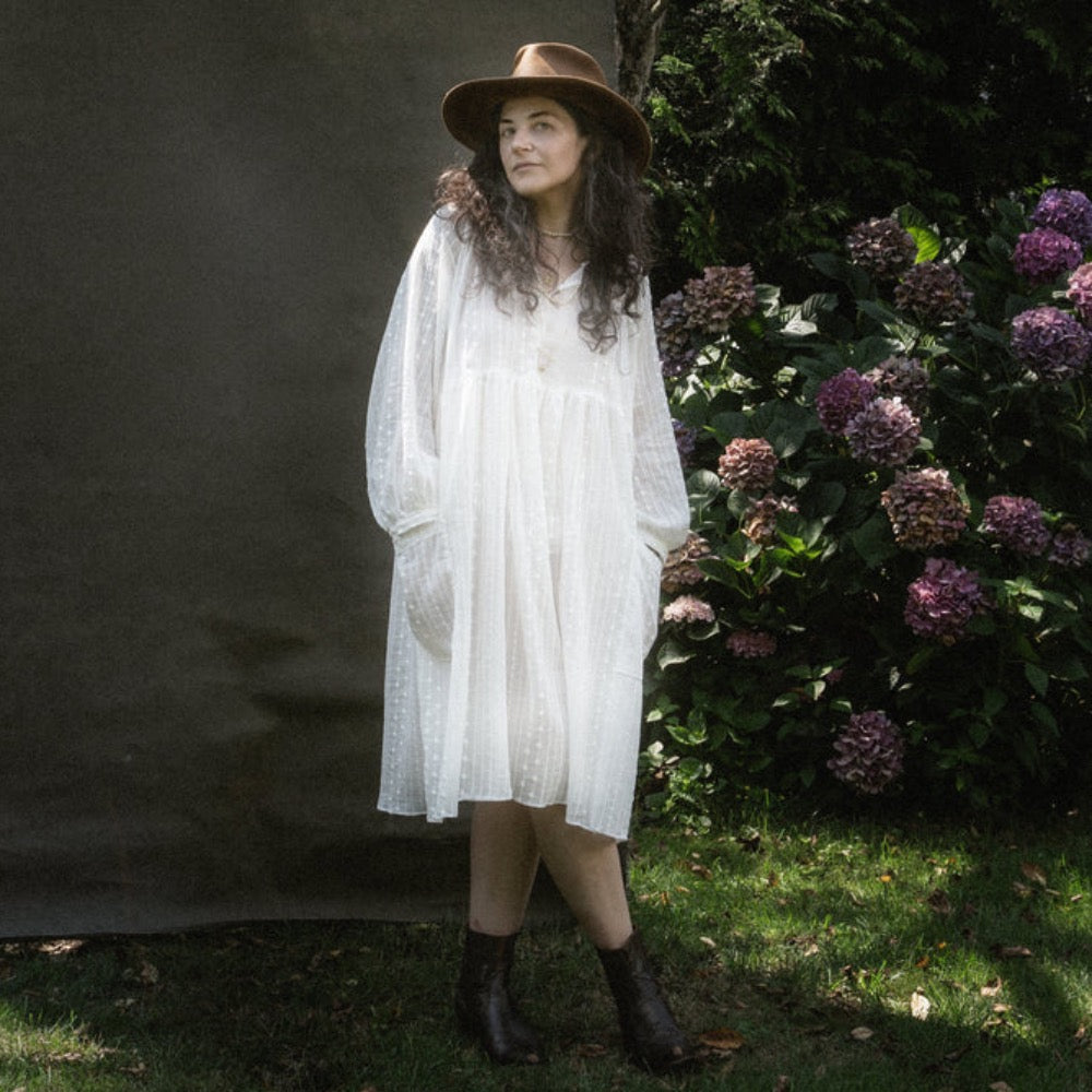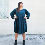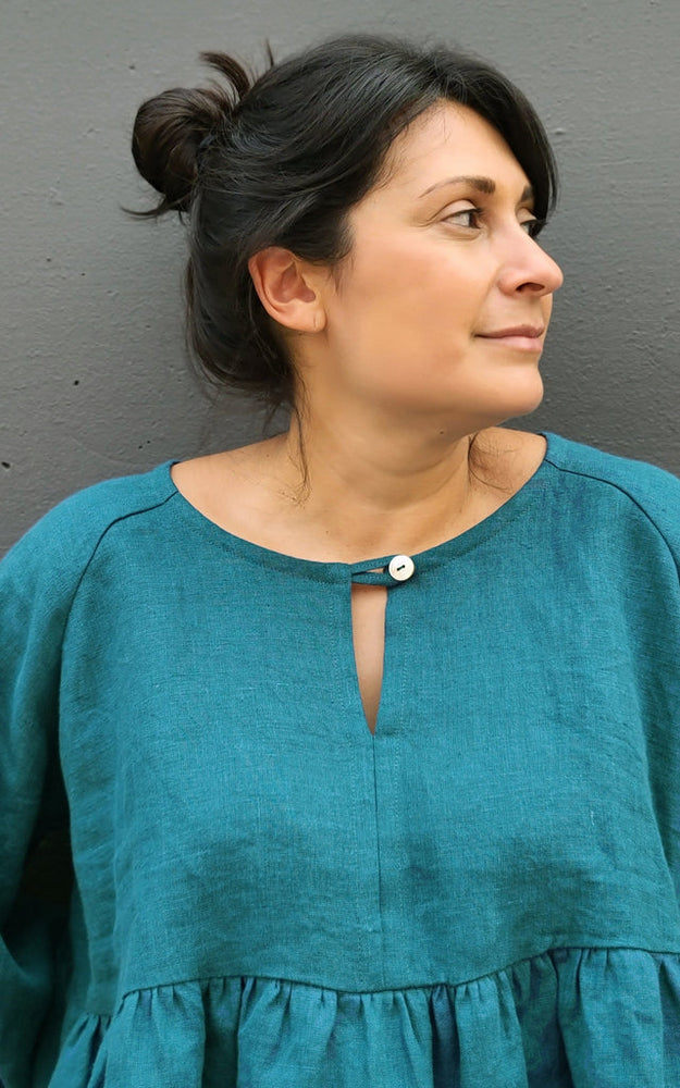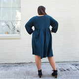The Romey Gathered Dress & Top pattern is inspired by our beloved Remy Raglan pattern. Beginning with the signature Remy keyhole neckline and loose fit, we shortened the waistline into an elegant empire waist with a gathered skirt or peplum and billowy gathered sleeves at bracelet length. Both dress versions include patch pockets.