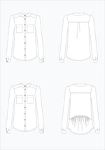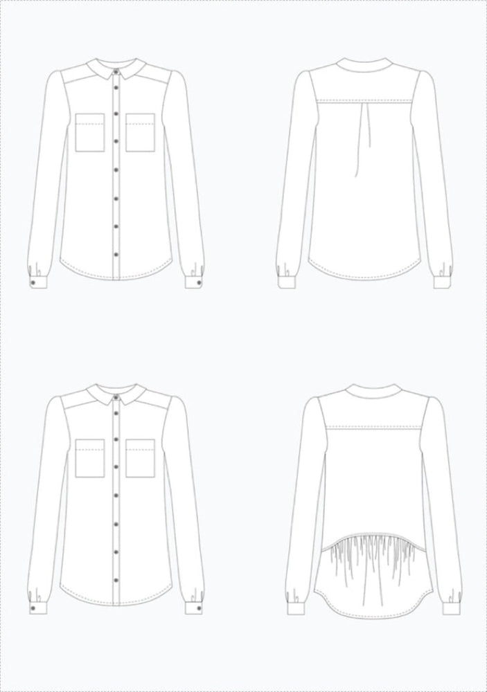 Suggested fabrics: Shirt weight fabrics ranging from silk chiffon, silk crepe de chine, bamboo silk, cotton shirting, chambray, lightweight denim, and flannel.
