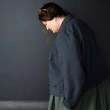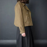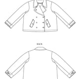Recommended fabric: oil cloth, linen, 8 -12oz denim, wool, corduroy, cotton twills or canvas. A heavier weight cloth will result in a more structured jacket.