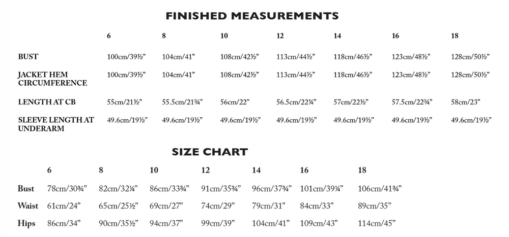 Denham is more closely fitting than a lot of our other patterns, do carefully check the finished measurements table, and if in doubt size up.