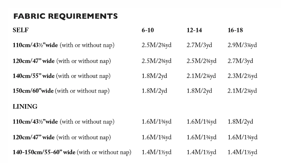 - If making an unlined jacket you will need 0.4M / 1/2YD of lining for the pocket bags.