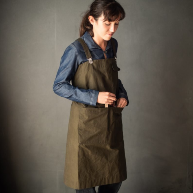 A perfectly functioning apron for makers of all disciplines, adjustable for all shapes and sizes and featuring a cross back for comfort, top pocket for smalls and large divided waist pocket with scissor holder.