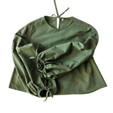 The balloon sleeves of this simple top and dress are the only detail that it requires to stand out. Less is more. The full sleeves are gathered with a tie which is threaded through a buttonhole, alternatively you can omit this buttonhole and insert elastic instead.