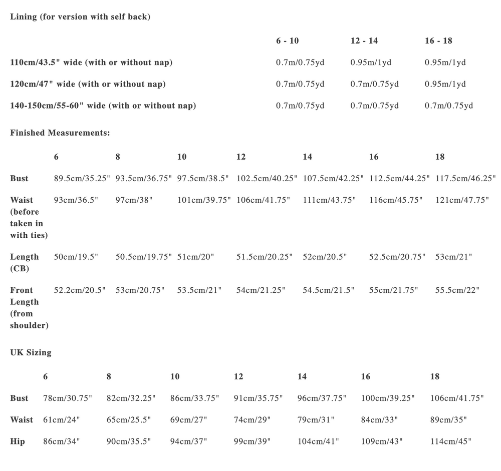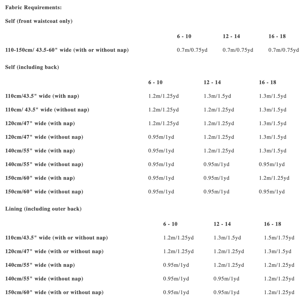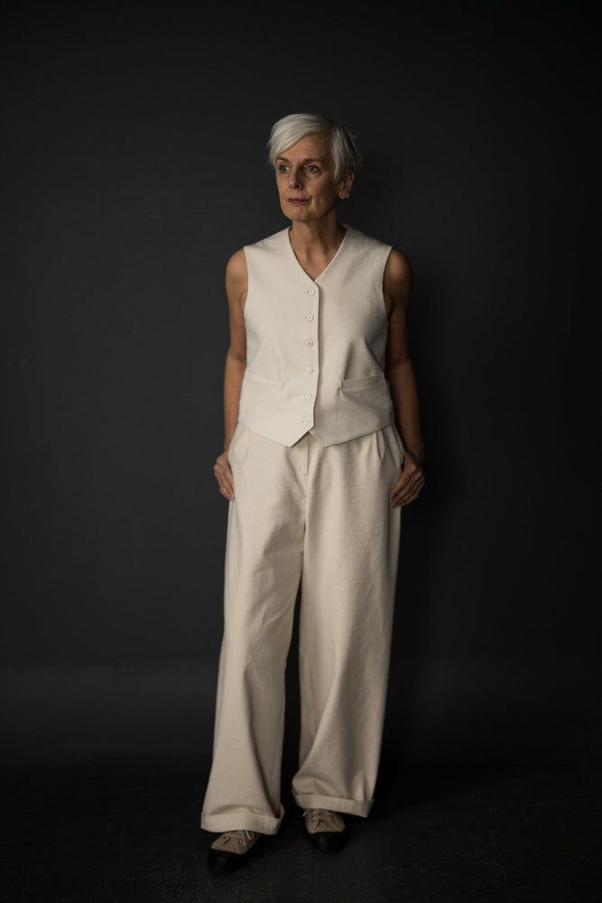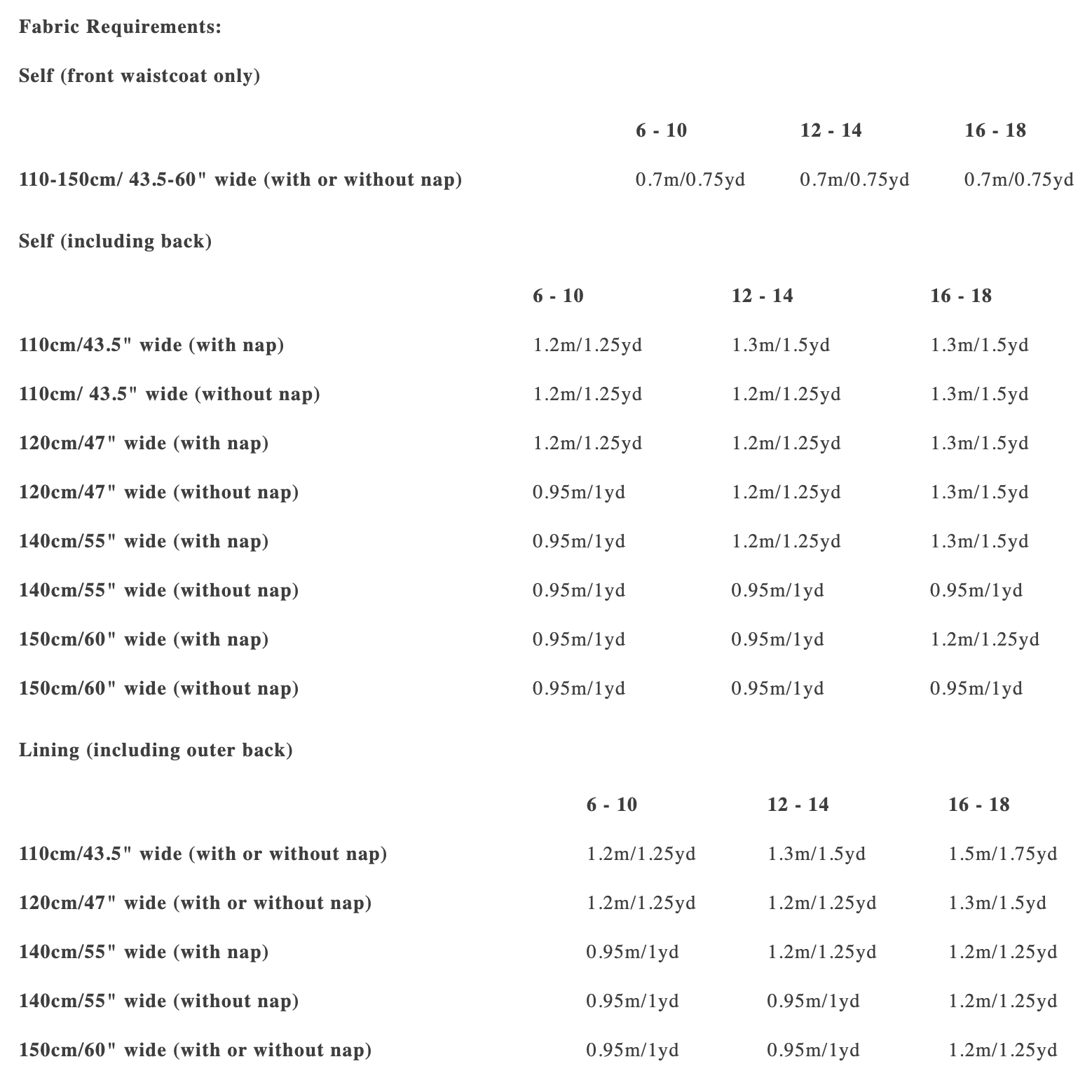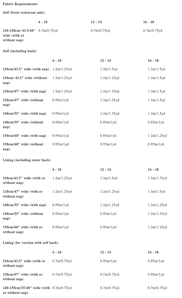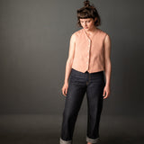 Recommended fabric: 5-8oz linen, 5-10oz denim, light – medium weight corduroy, wool, wool blends, cotton canvas or twill. For the lining: lightweight wovens such as calico, cotton lawn, cotton, cotton blends, tencel/linen (when choosing your cloth consider that the lining fabric may be visible).