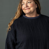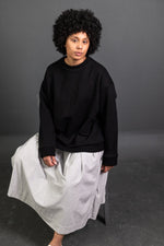 Sidney is a boxy sweatshirt with a loose crew neck and finger skimming sleeves.