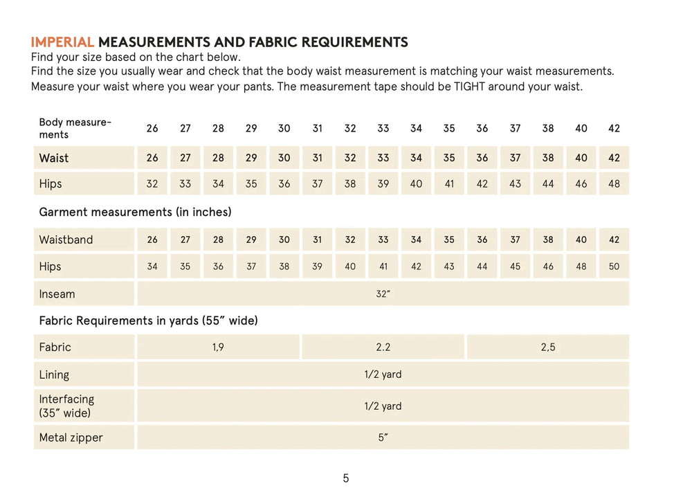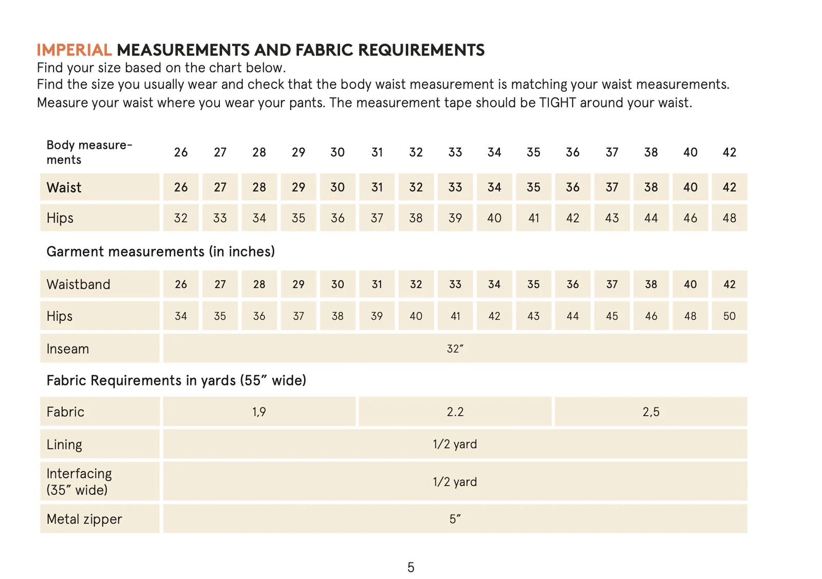 Suggested fabrics: Use bottom-weight, sturdy cotton, linen, rip-stop, canvas, denim, or corduroy.