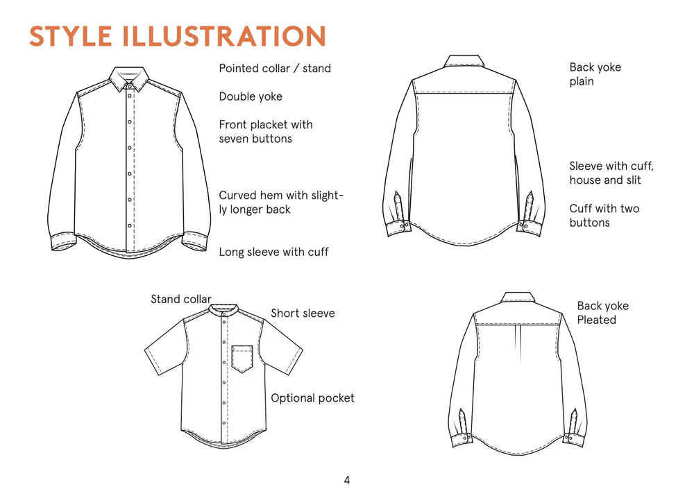 The Jensen Shirt Sewing Pattern is the ultimate button-up pattern featuring all the traditional details. This pattern includes a button placket, classic collar with a stand, cuffed sleeves, and a back yoke. The relaxed fit ensures comfort while maintaining a polished look. The shirt has a slightly longer, curved hem in the back, perfect for casual wear. Customise your Jensen Shirt by choosing between short and long sleeves, pleated or unpleated back, and optional front pocket.