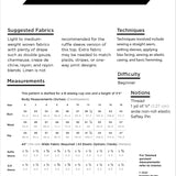 Suggested fabrics: Light to medium-weight woven fabrics with plenty of drape such as double gauze, charmeuse, crepe de chine, rayon, and rayon blends. Linen is not recommended for the ruffle sleeve version of this top. Extra fabric may be needed to match plaids, stripes, or one-way design prints.