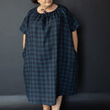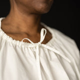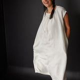 A simple t-shaped dress or top with a gathered drawstring neckline that can be adjusted to sit at your desired height. Make it sleeveless or with sleeves, structured and architectural in poplin or soft and relaxed in linen.