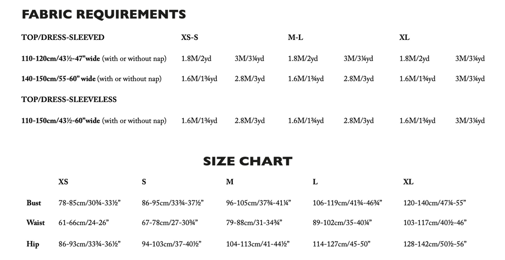 Fabric recommendations: light to medium weight wovens such as linen, brushed cotton, cotton lawn, cotton poplin, tencel, Indian handlooms, lightweight baby cord or cotton double gauze.