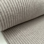 Tubular knitted cotton sweatshirt ribbing for use as cuffs, neck and hems on both woven and stretch garments.