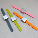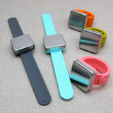 The sturdy silicone slap-bracelet sports a brushed steel-plated magnet, has measuring lines for inches and centimetres, and fits any size wrist.
