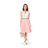 Two deep pleats each opening toward the bottom give these skirts generous width. Use a heavier fabric to keep the A-line in shape. Pretty and colourful accent: ribbon stitched to the waistband of skirt view B.