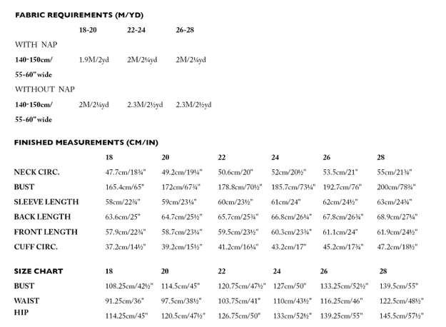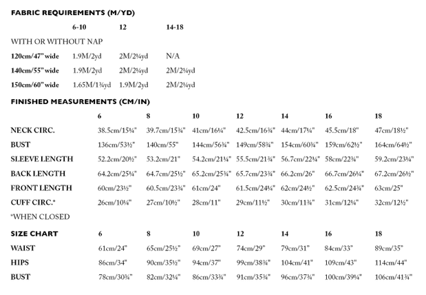 Notions: 1 x Matching thread. 6 x 11-15mm/1/2″ – 3/4″ buttons. 0.3M/1/2YD lightweight interfacing.