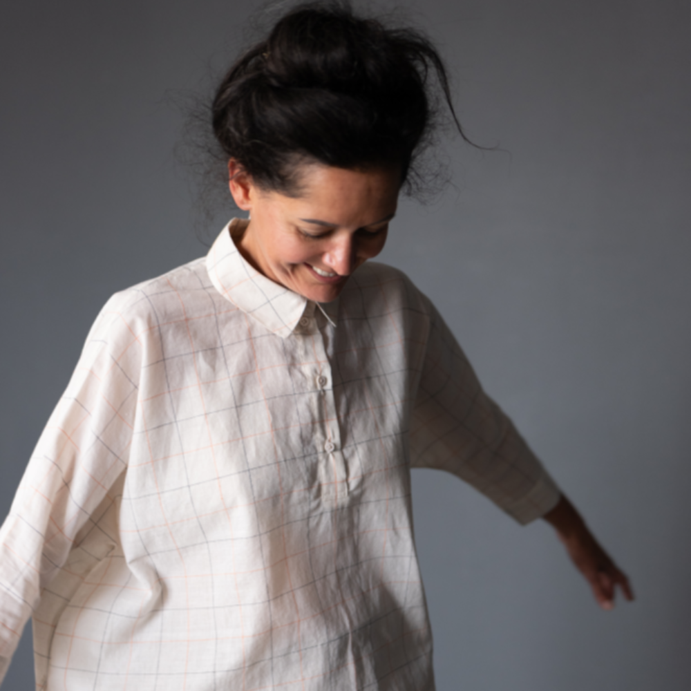 Fabric suggestions - 3-6oz linen, cotton poplin, cotton lawn, cotton double gauze, Indian handlooms, cotton chambray, Tencel, hemp/cotton blends. Do not choose anything too heavy, as the back is lower than the front it will pull down making it uncomfortable at the neck.