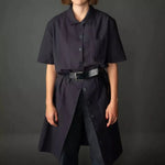 Swagger like a rebel to the ball park in this short sleeve boxy shirt, best worn casual in cotton or linen. Inspired by the American style of the fifties. Features a one piece collar, patch pocket, back yoke, short sleeves and short side splits.