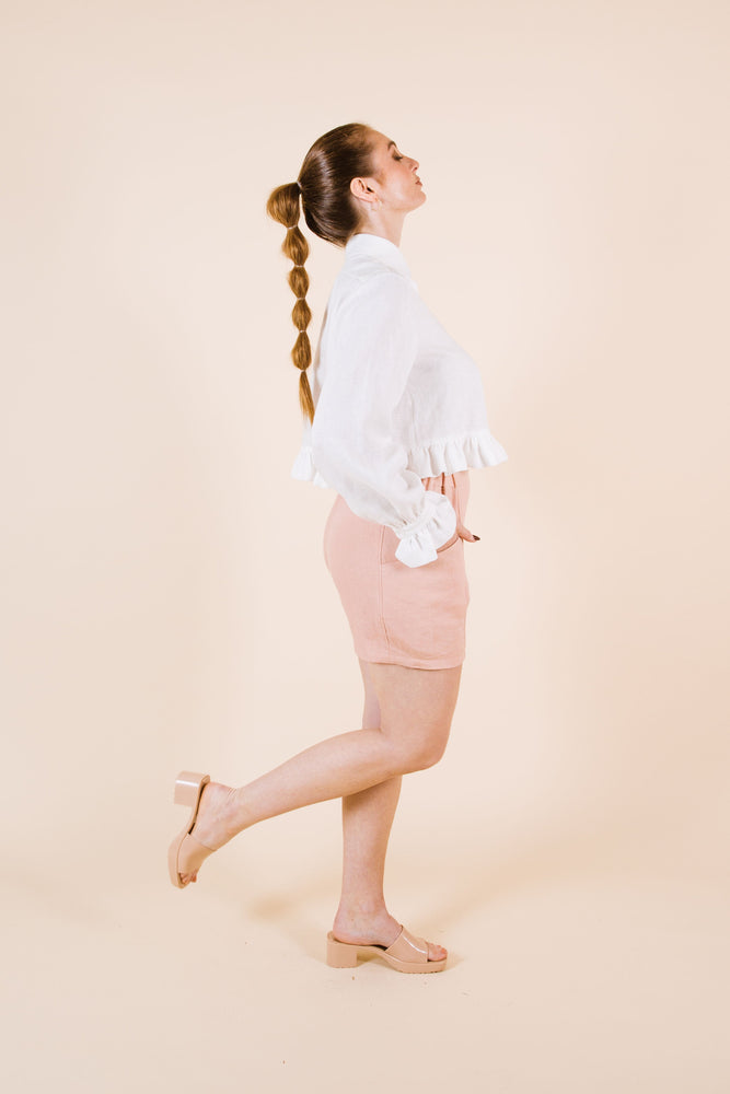 A dreamy wear with an elegant and timeless feel. The Ashling pattern is exactly what dreams are made of. Make it in a dress that sits just above the knee, a long sleeve shirt for a classic and versatile look, or a cropped blouse with a frill hem.