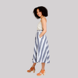 Wattle is a set of classic skirts with unique crossover closure at the side seam. The styles sit on the natural waist and feature a hidden closure at the left pocket. The three skirt options all have slash pockets, with two waistband options and multiple lengths.