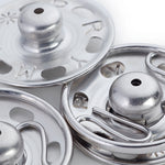 Pack of 20 assorted size 6-11mm rustproof silver-coloured snap fasteners.
