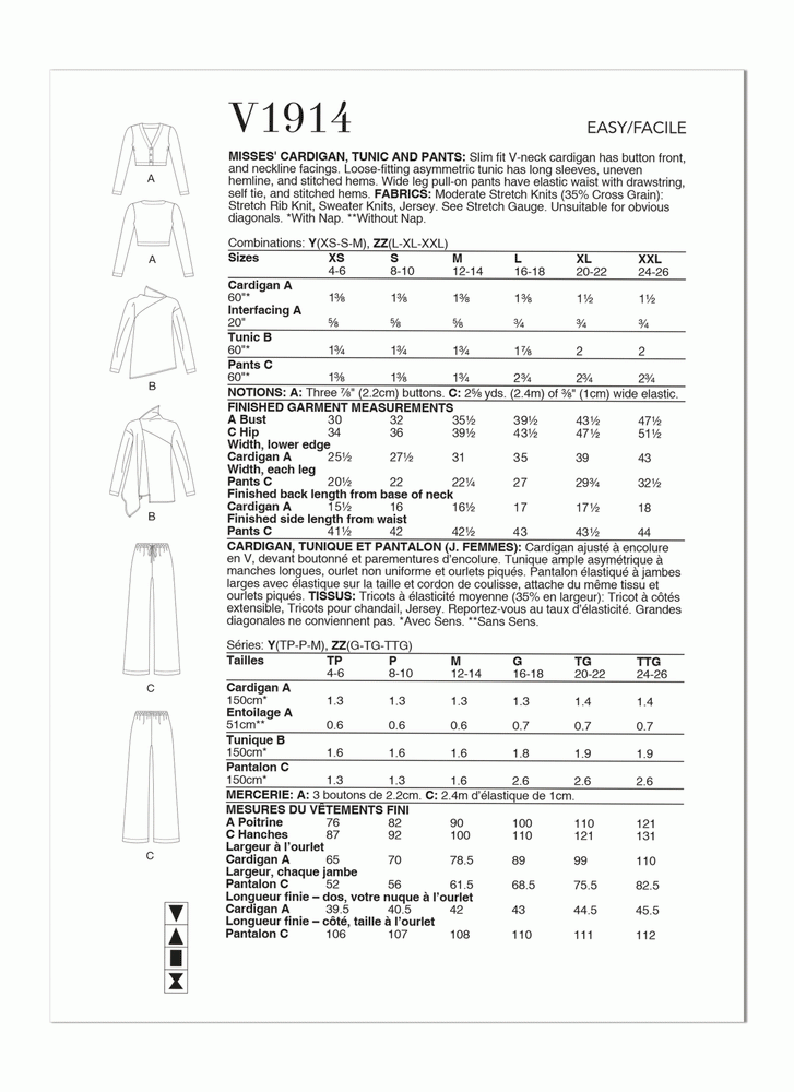 Recommended Fabric: Moderate stretch knit (35% Stretch) - Stretch rib knit, sweater knit, jersey, etc.
