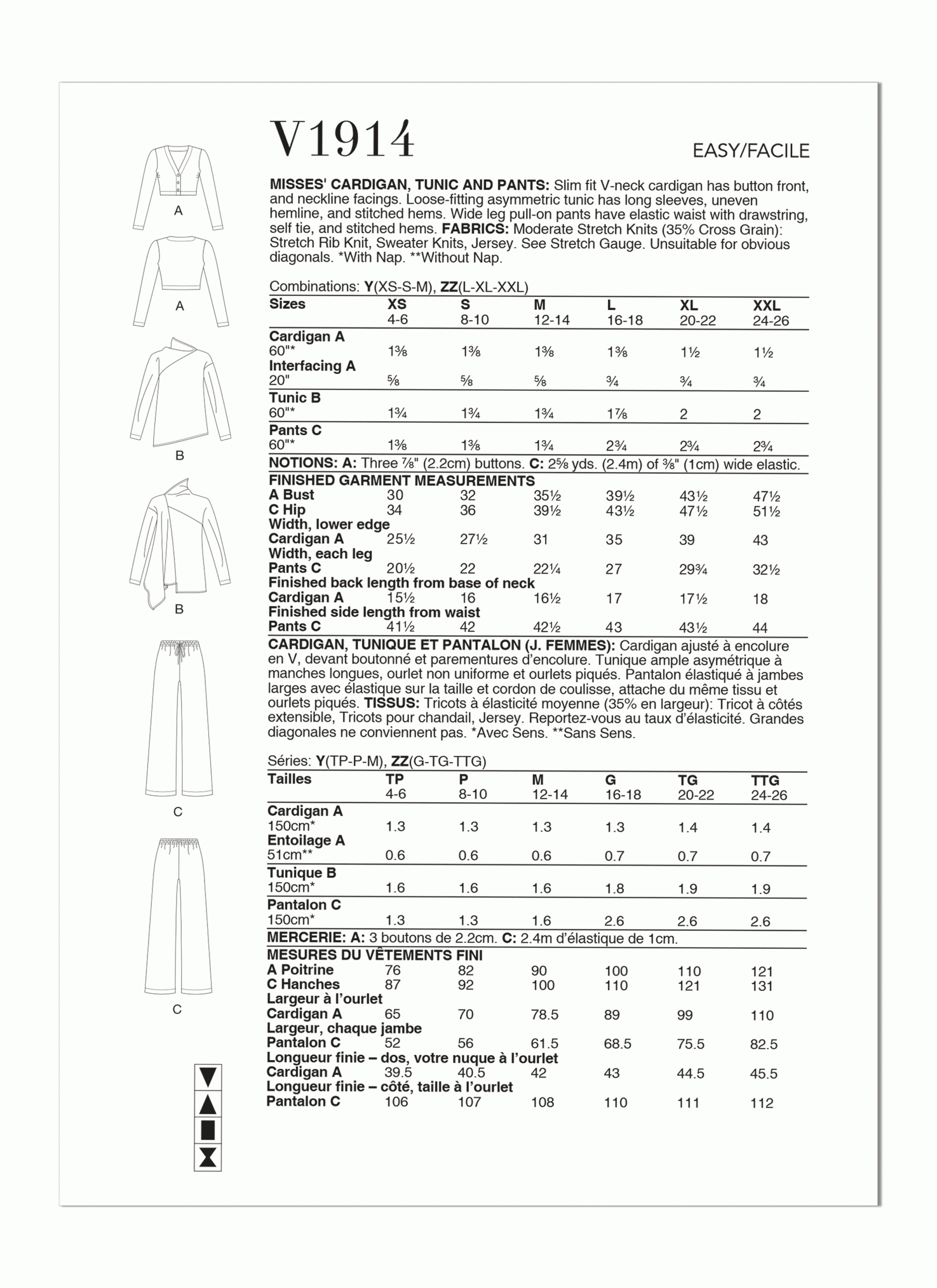 Home stretch-knits Vogue Patterns - Misses' Cardigan, Tunic and Trousers - 1914