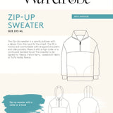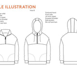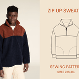 The Men's Zip-Up sweater sewing pattern is a sporty pullover with a zipper from the neck to the chest. The sweater is roomy and comfortable with dropped shoulders and side pockets. Make the zipper sweater sewing pattern with a stand-up collar or a cozy banded hood.