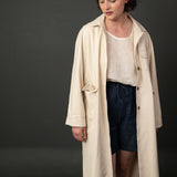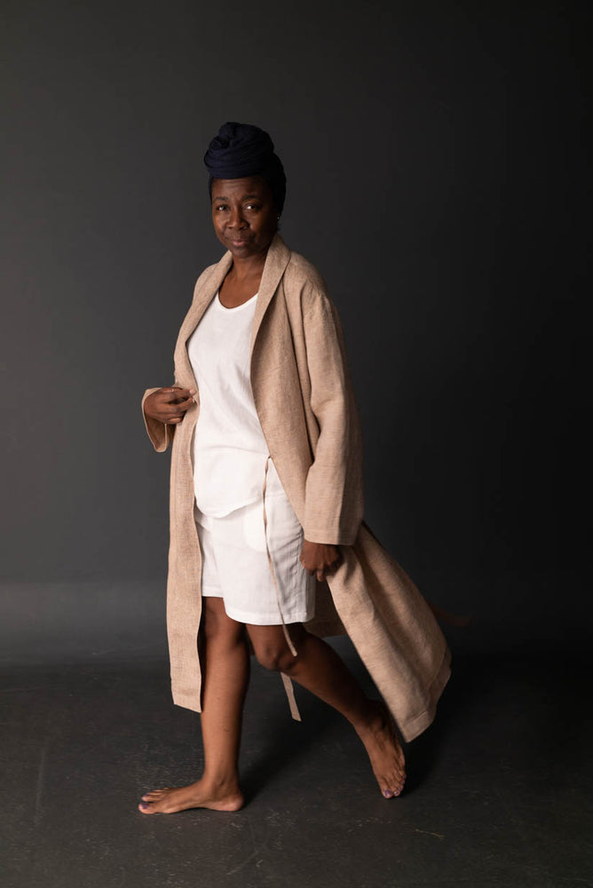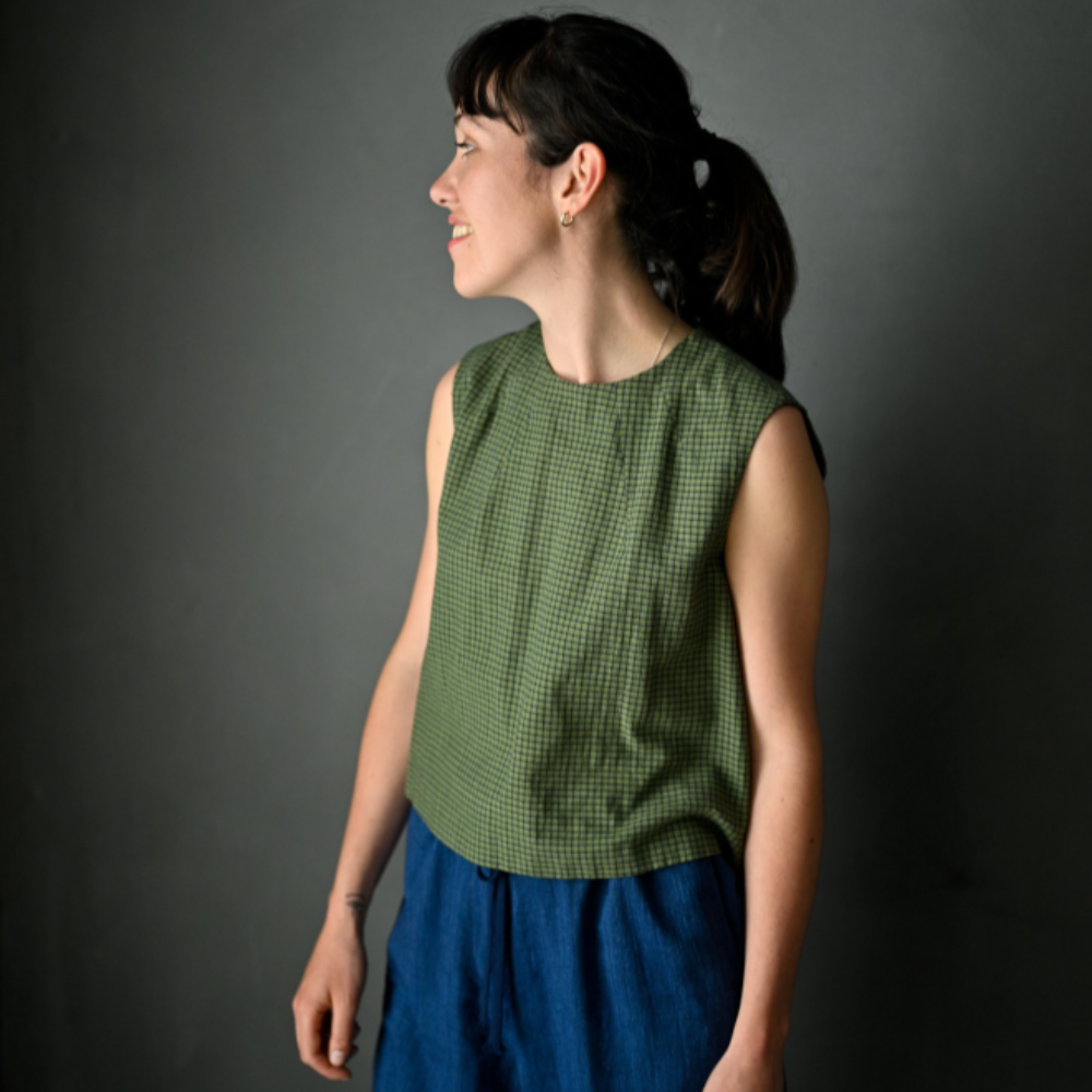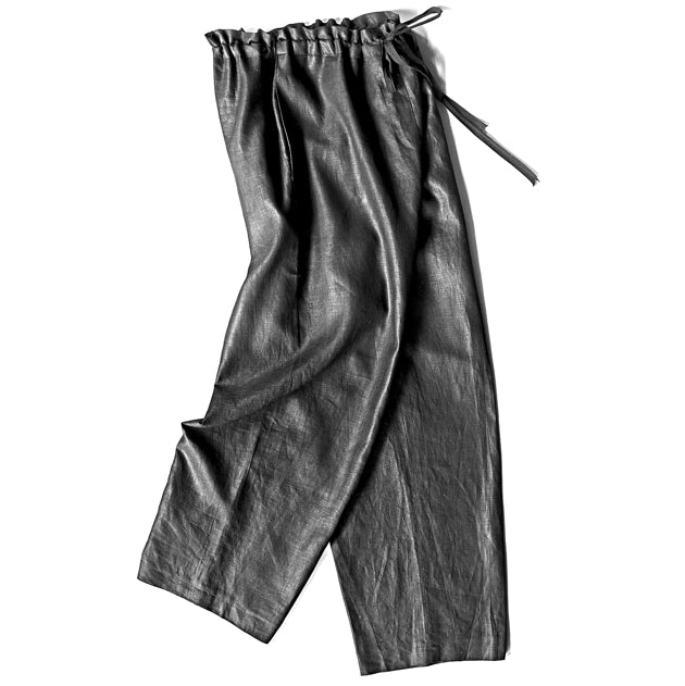 Fabric recommendation: The 101 trousers would work well in linen, soft cottons, fine wool, wool crepe, washed silk or rayon. Choose fabrics that drape and won’t bulk around the drawstring waist.