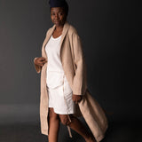 A gentle drawstring trouser with side pockets and a false fly, cut to sit right on the waist. It features 3 versions – cropped & tapered trouser, wide straight trouser or shorts.