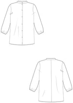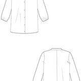 The Blouse is made without darts and includes a button placket, collar and elasticated cuffs making it ideal for confident beginners looking to sew their first blouse.