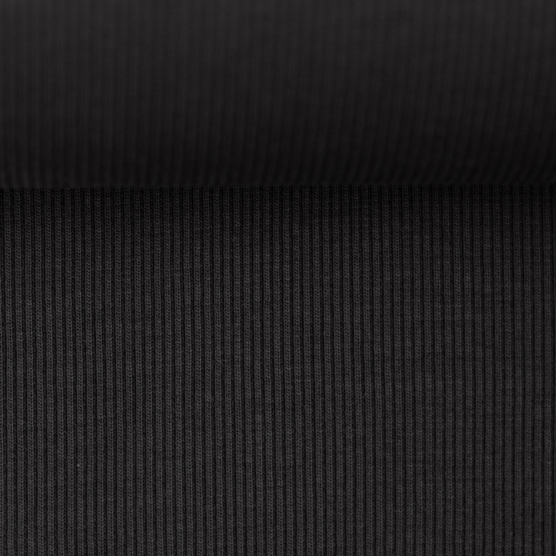 Tubular ribbed cotton sweatshirt cuffing for use as cuffs, neck and hems on both woven and stretch garments. Rib pattern is approx. 1mm wide.