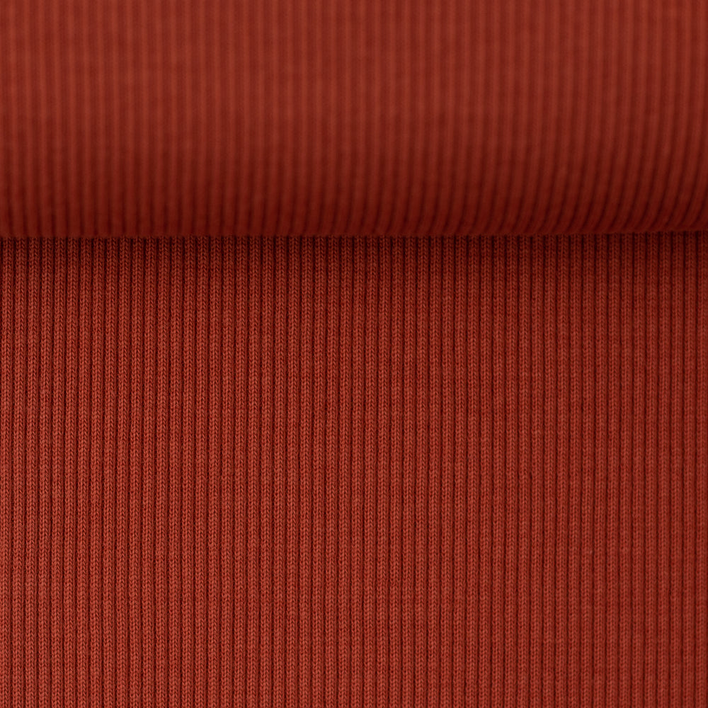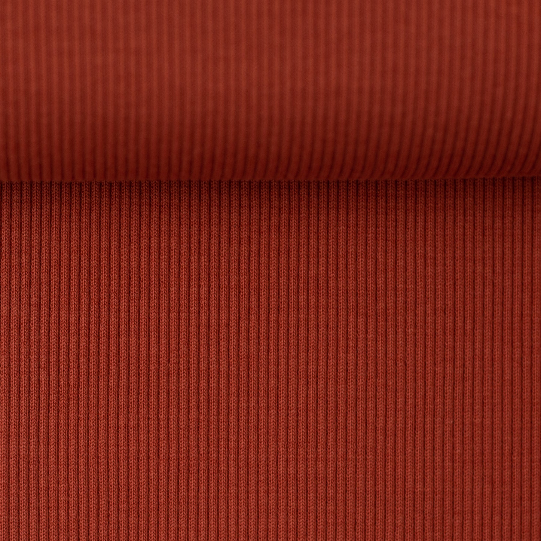 Tubular ribbed cotton sweatshirt cuffing for use as cuffs, neck and hems on both woven and stretch garments. Rib pattern is approx. 1mm wide.