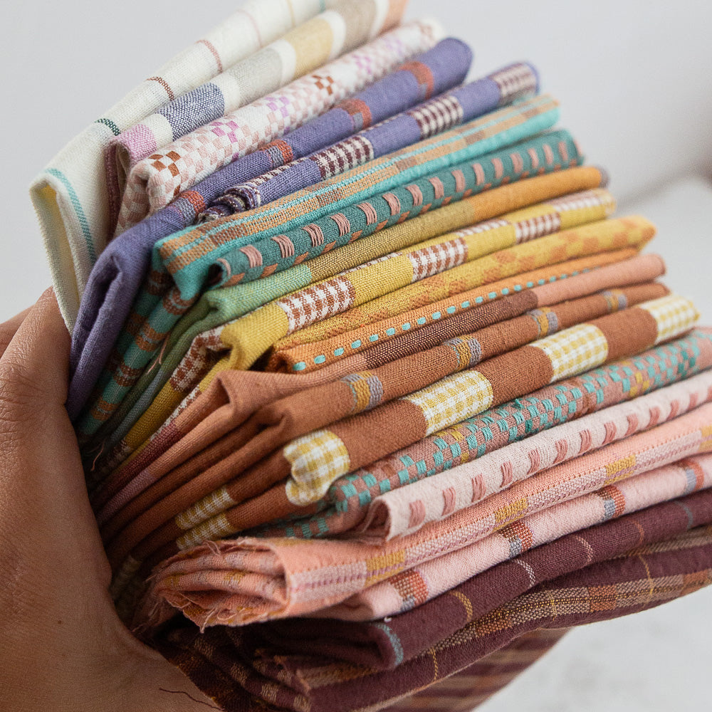 A beautiful cotton featuring a graphic woven design from Fableism Supply Co.