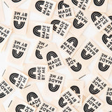 The "made by me" and rainbow feature rich black ink printed on an organic cotton tag. They are super soft to the touch and never scratchy.