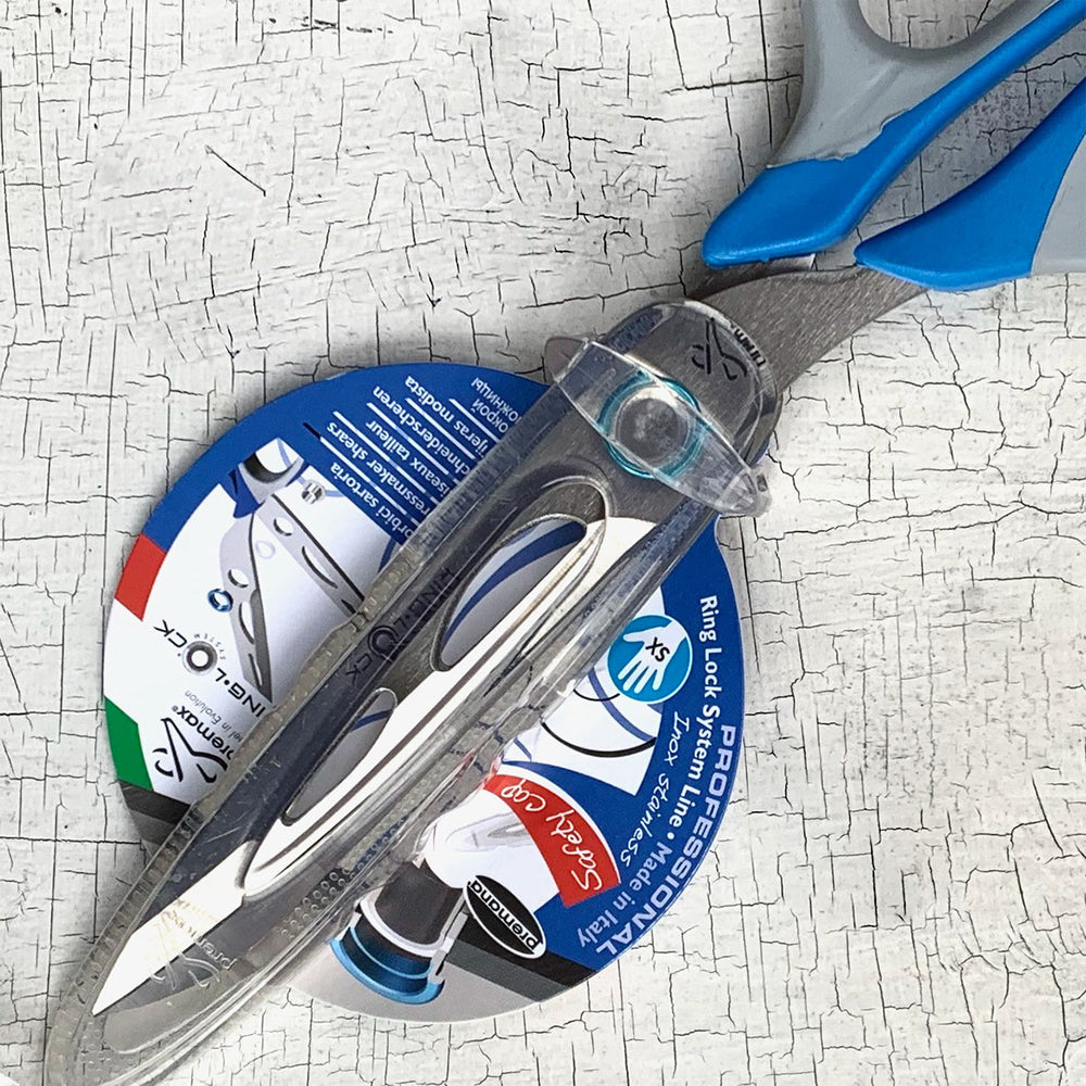 22cm ring-lock shears, light and soft with Nylon + rubber ergonomic handles that follow perfectly the shape of your hand. Extremely sharp AISI 420 stainless steel blades for fine cutting and all tailoring purposes.