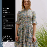 Pretty and delicate, the Alexa Frill Dress features the option for frilled cuffs and hem, with a lightly puffed sleeve.