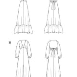 The Beatrix Maxi Dress creates a fluid slit V-neck silhouette with variable sleeve and ruffle options – a versatile style with free-spirited ‘70s appeal.