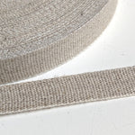 A sturdy and natural-feeling linen tape with an evenweave and textured appearance. 13mm wide suitable for dressmaking trims, upholstery, cushions, crafts, gift wrapping...