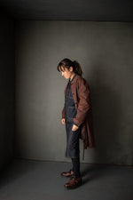 Recommended fabric: Dry Oilskin, Oilskin (lined version only), Tweed, Woollens, Cotton Drill, Cotton Canvas, Waterproofed Cottons and Linens. You'll also need striped or plain ribbing - we have lots of that. For the lining you can use cosy brushed cotton, smooth cotton poplin, or a medium weight slip lining in acetate. For their samples shown in the photos M&M have used oilskin with striped rib, Harris tweed with plain rib and various oilskin with plain rib.