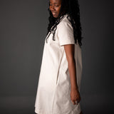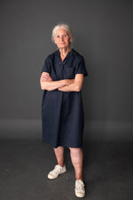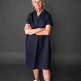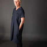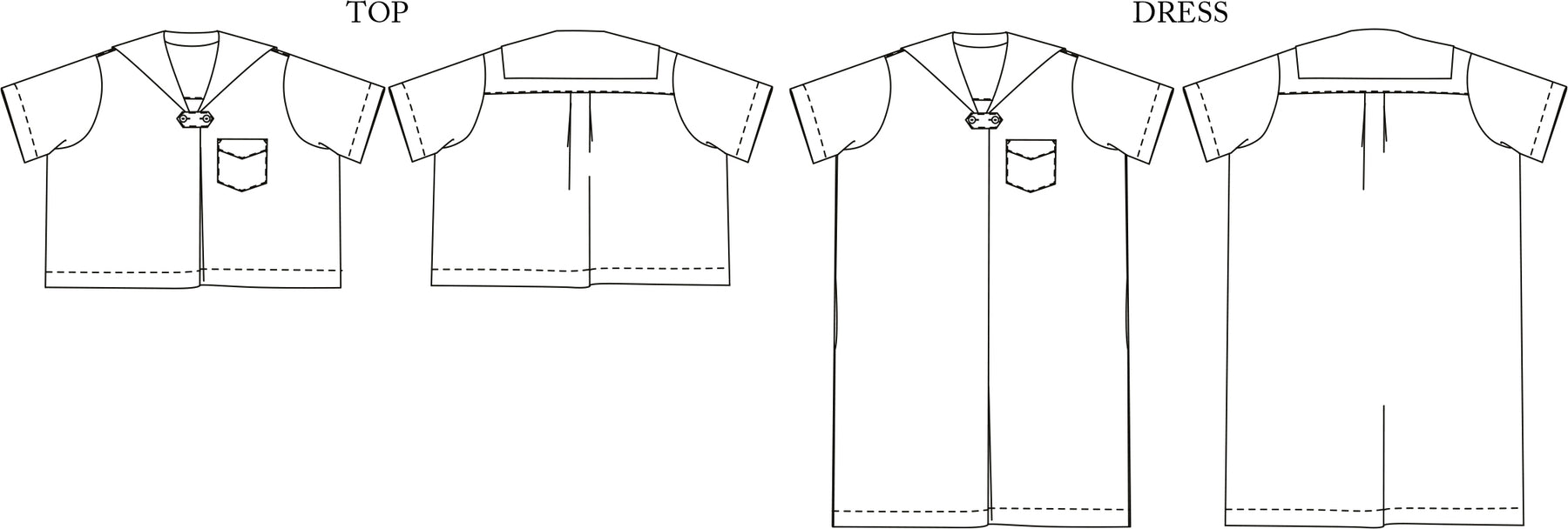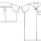 A loose fitting dress or top with front and back pleats, side in-seam pockets (dress only), breast pocket and a sailor collar. Perfect attire for any board walk.