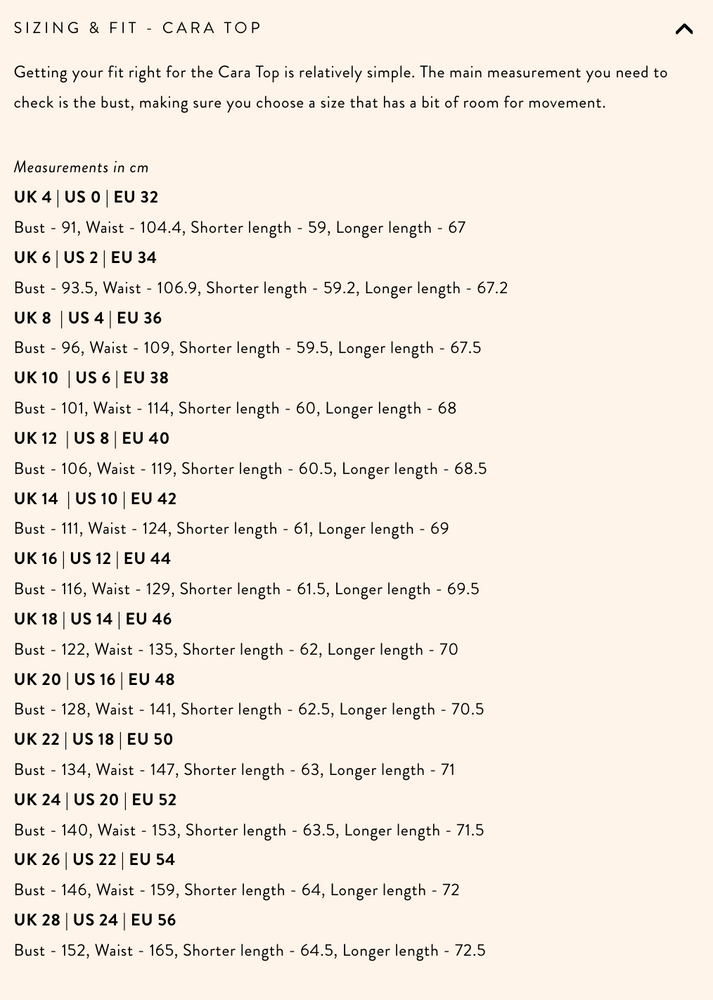 The Cara Top is a simple summer blouse that's flexible enough to wear in a wafty muslin at the beach or in a smarter silk as part of a wedding two-piece. It comes with 2 length options, shorter to sit right on the hip or a little longer to hit the top of the thigh.