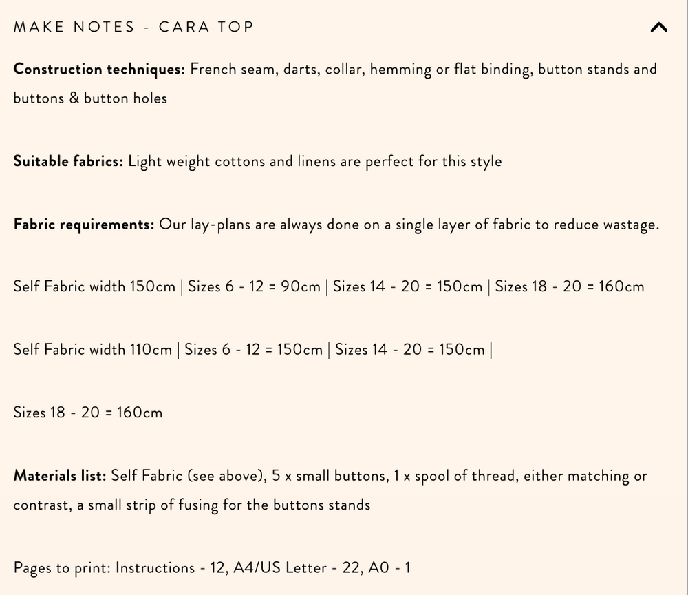 It is a simple piece to make which means it’s a great project for beginners, however this doesn’t mean we cut corners on the construction quality. You’ll be using french seam construction and you’ll have the option of a double fold hem or a flat binding to finish the hem and armholes.