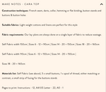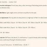 *See images for sizing, fabric recommendations and notions*