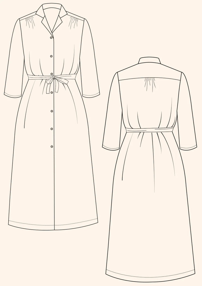 The Celia Dress is a timeless design with hints of tailoring and an easy going feel. You'll have a huge amount of flexibility with fabric choice for this dress depending on the intended feel. You could opt for silk for a smart occasion, denim for a cool and casual feel or even a light wool weave for cosy winter wearing.