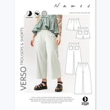 Verso is a very classic and timeless trouser sewing pattern that includes two variations: straight-leg high water trousers, and shorts with small side slits. Both variations are high-waisted, have a discreet invisible side zipper, and angular patch pockets that can be sewn on the front or back.