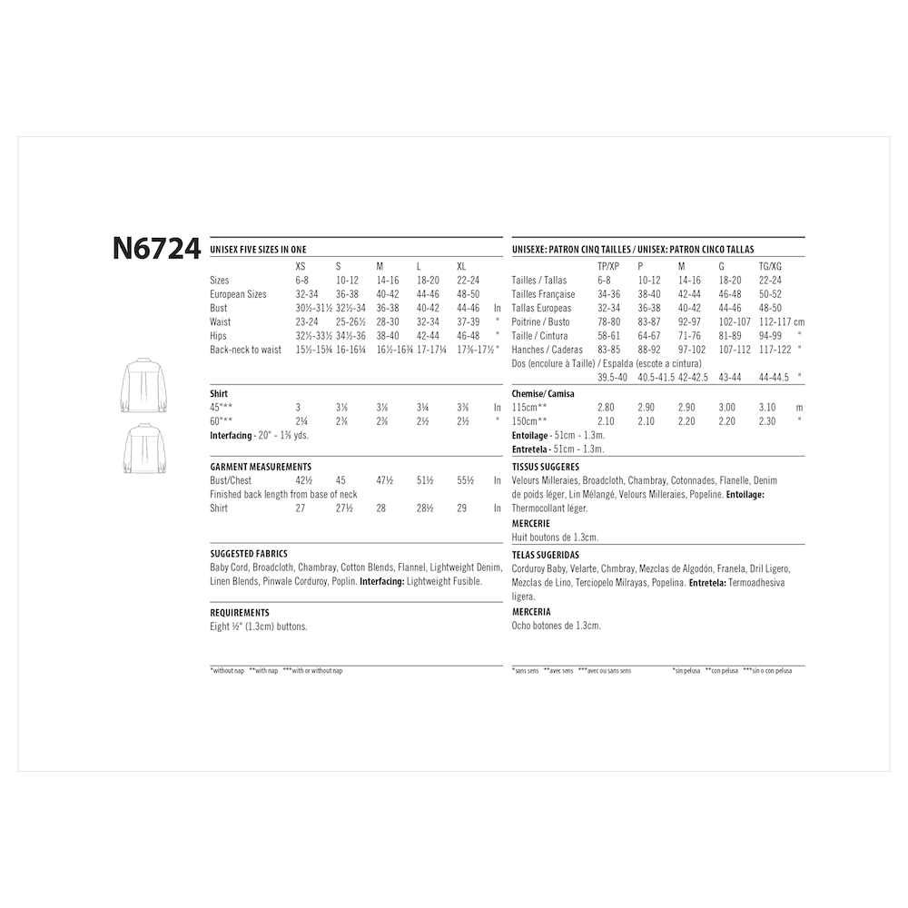Home New Look 6724 - Men's and Women's Shirt Unisex