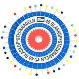 40 assorted colour glass headed pins from Prym dispalyed on a card wheel. Size 0.60mm x 30mm No. 9. Great for general use and dressmaking.