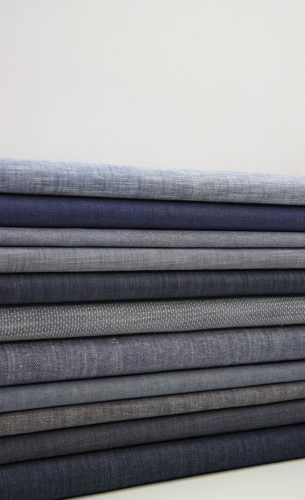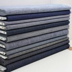 Super soft and smooth, indigo and white mini-herringbone cloth from Robert Kaufman's Chambray Union collection. The perfect weight for floaty dresses, loose-fitting summer trousers, shirts, blouses, quilt backing, linings and children's clothing.